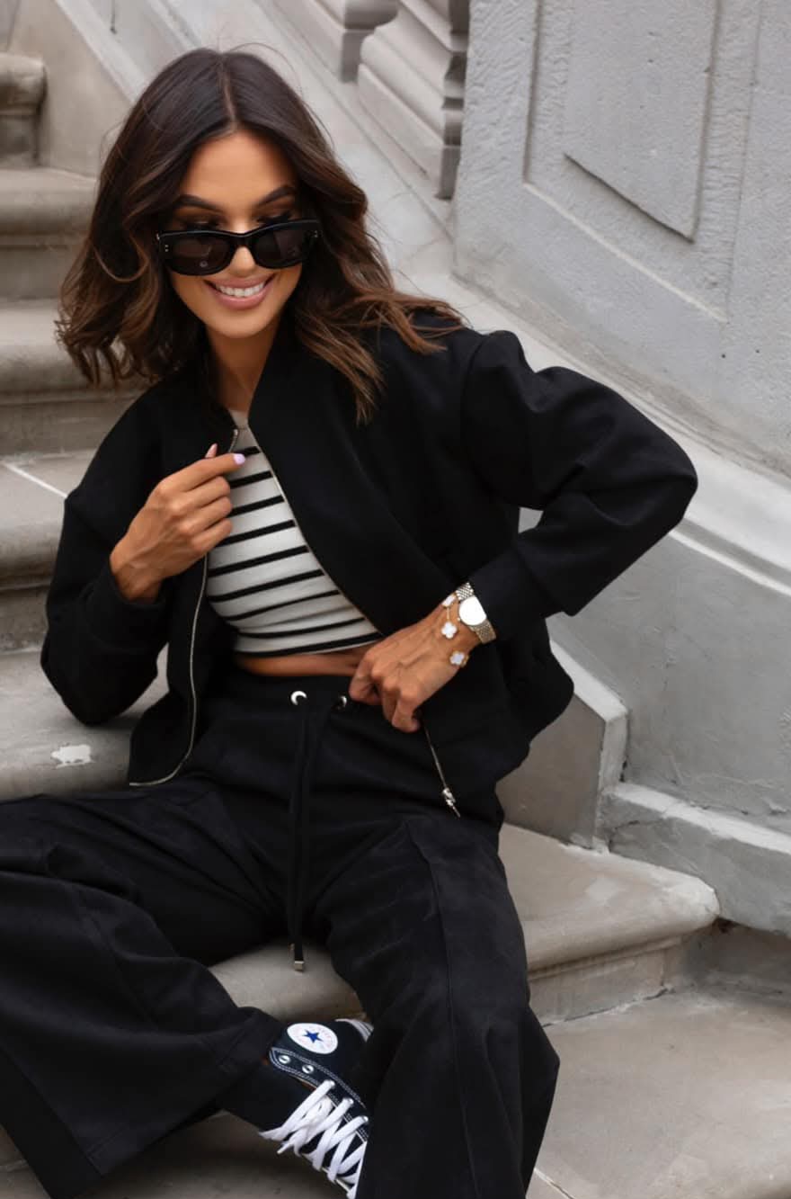 Wiskozowa bomberka na suwak w kolorze czarnym oraz w zwierzęcym wzorze.