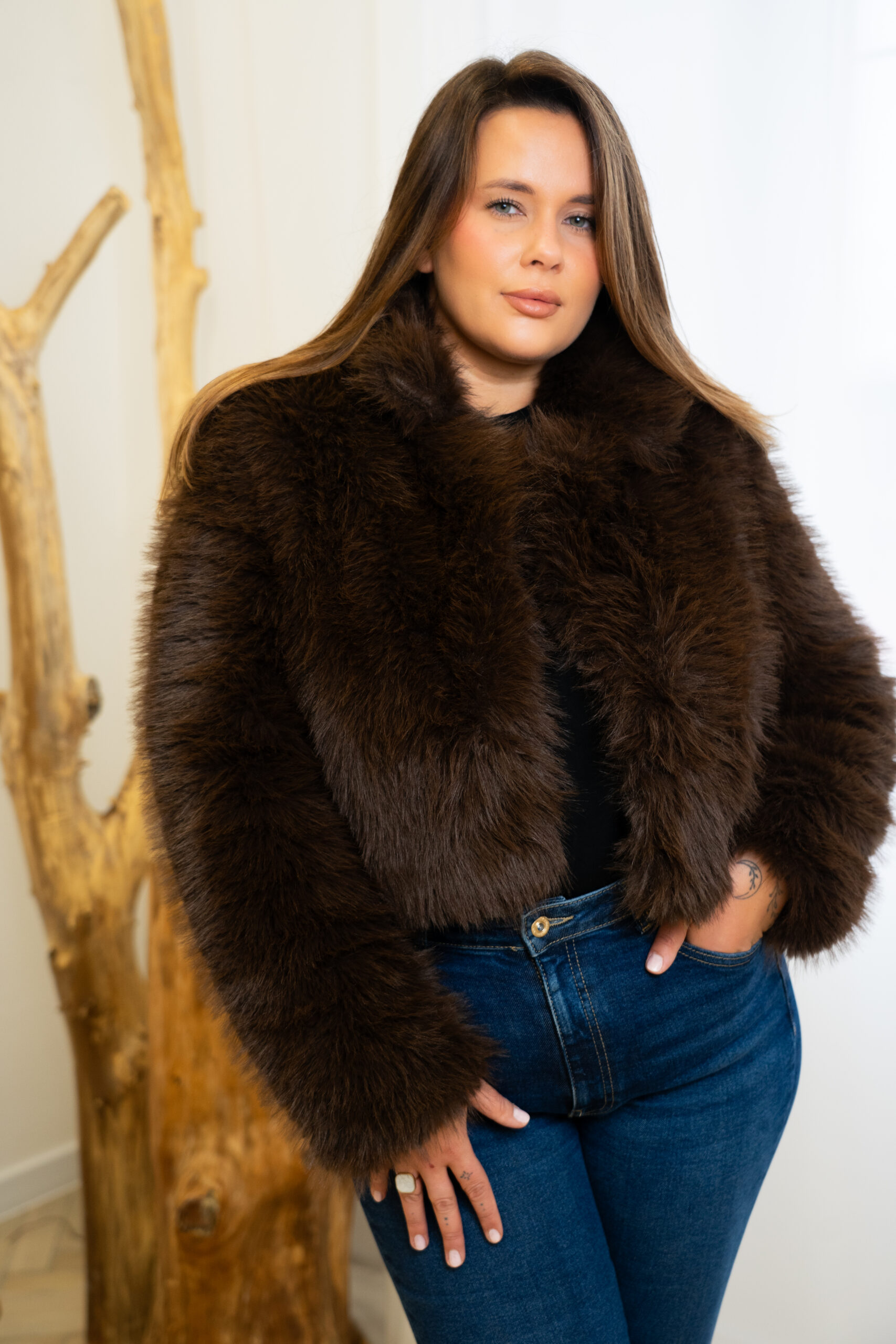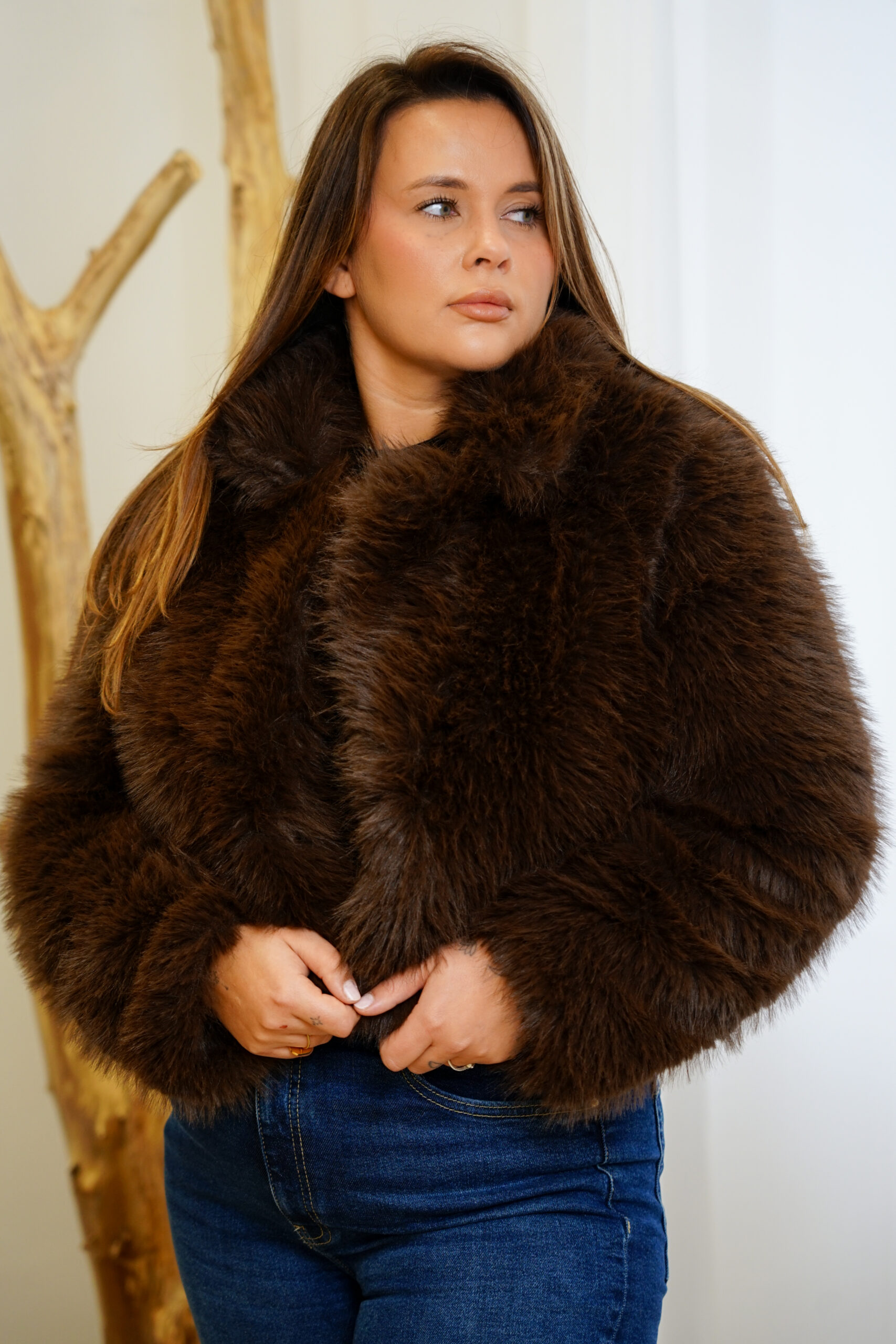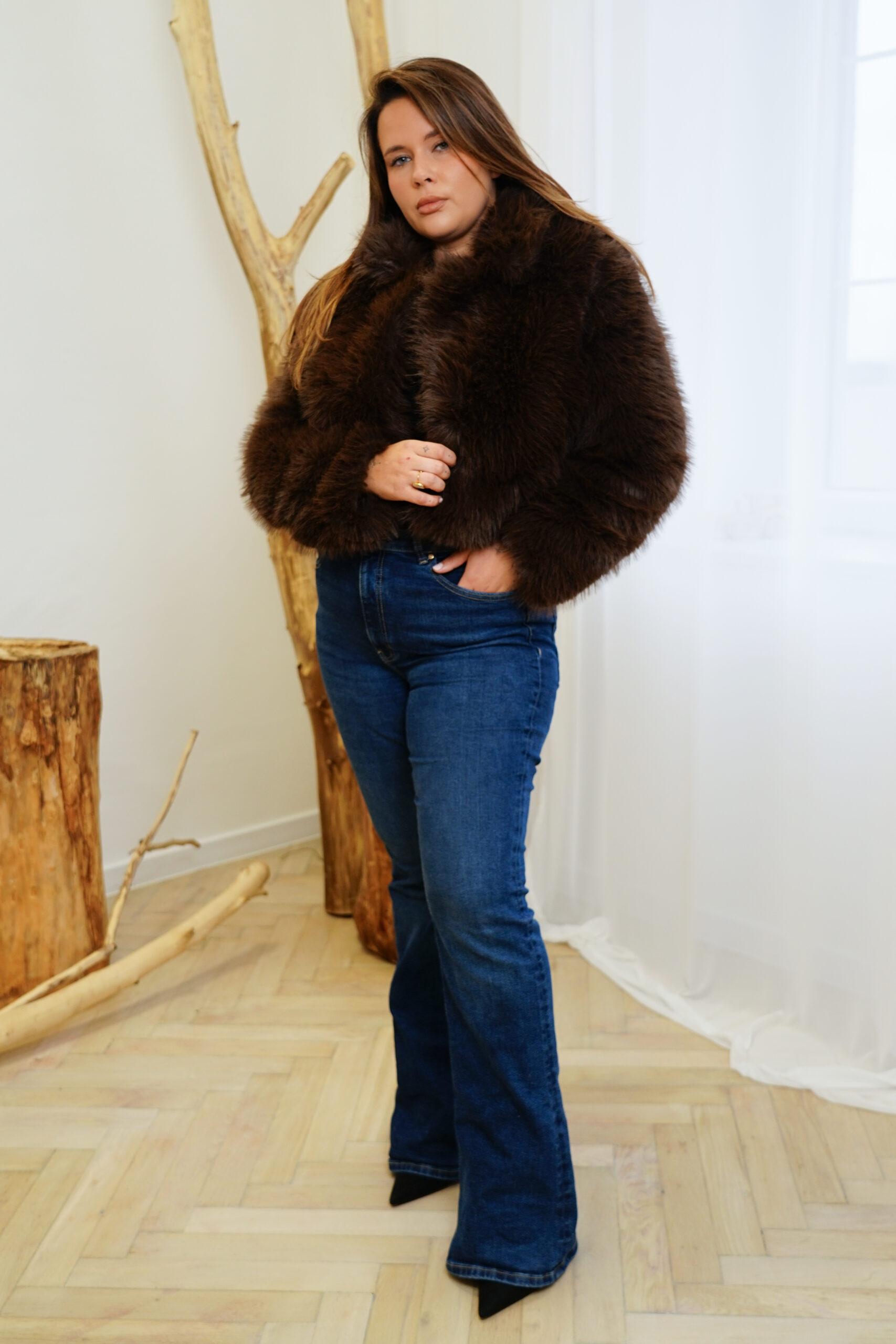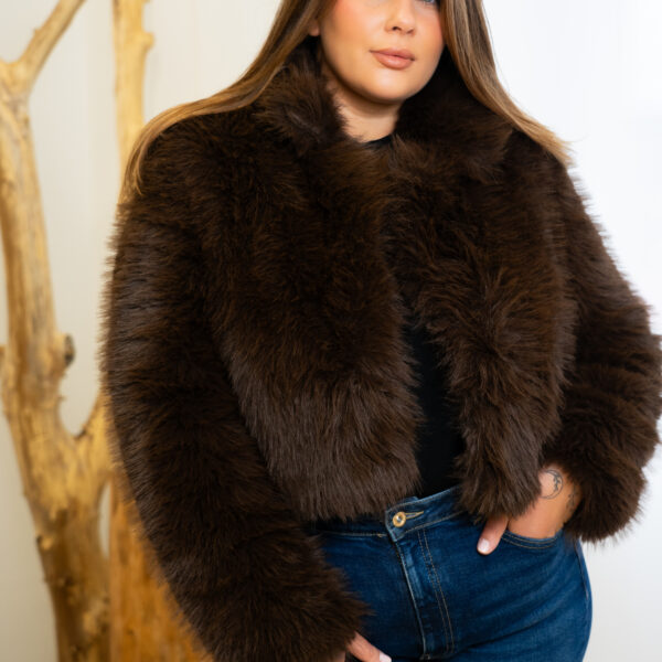 Krótkie futerko w najmodniejszym kolorze czekoladowego brązu.